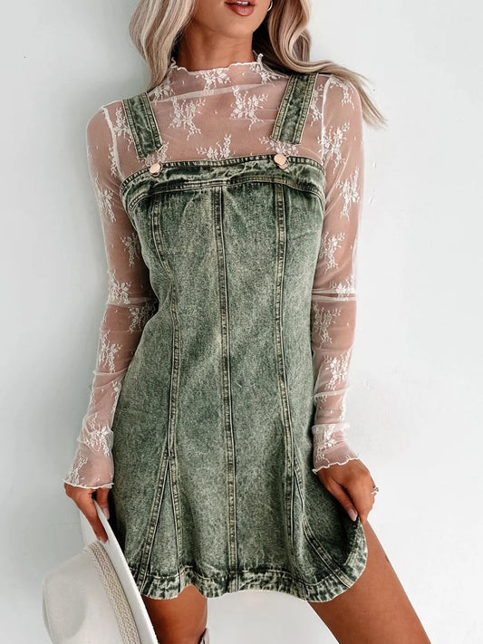 Annie Wear V-Neck Adjustable Strap Denim Overall Dress with Pockets